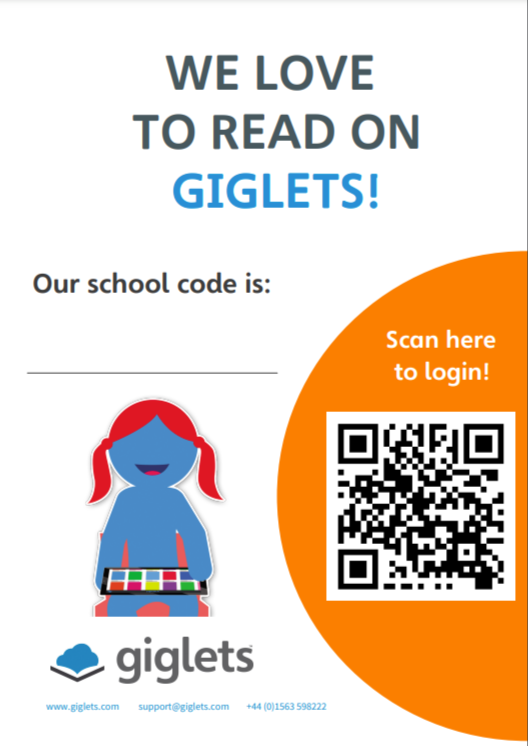 Simply add your school code on the line provided and the QR code can be scanned and will take you directly to the Giglets login page.